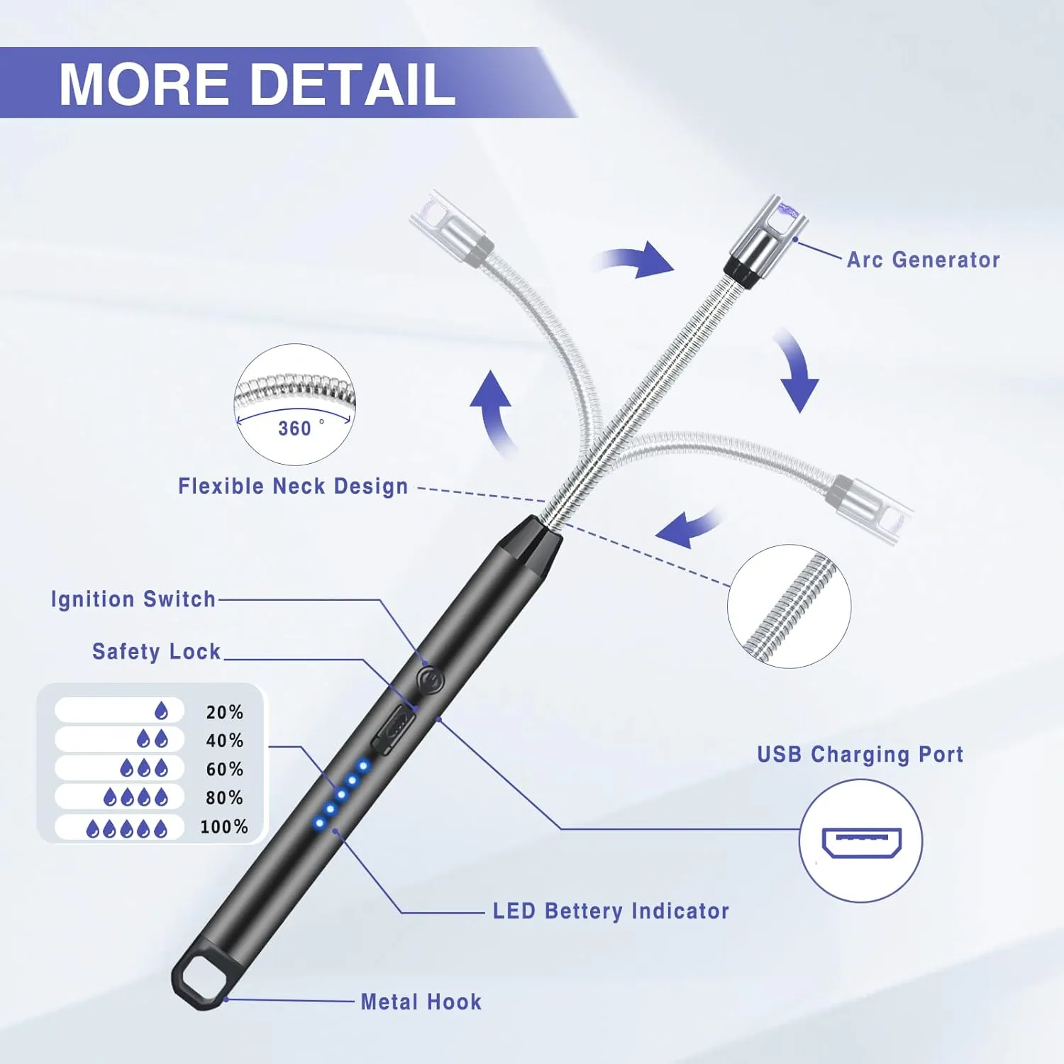 1. Electric Lighter Arc Windproof Flameless with 360° Flexible Neck USB Type C Rechargeable Flameless Arc Lighter Flexible and Windproof for Candles Hiking Camping Kitchen Fireplaces